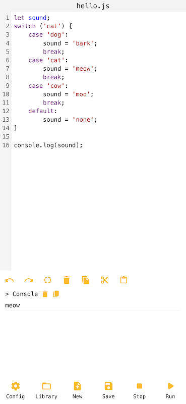 Tulis dan jalankan kode JavaScript sederhana saat bepergian dari perangkat Android Anda.