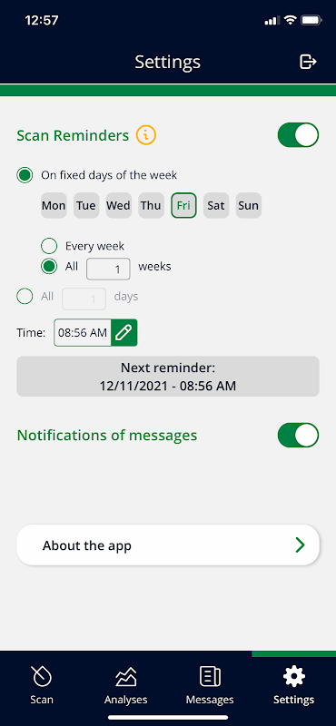 - Pindai pengingat yang dapat disesuaikan secara individual (hari, minggu, waktu)