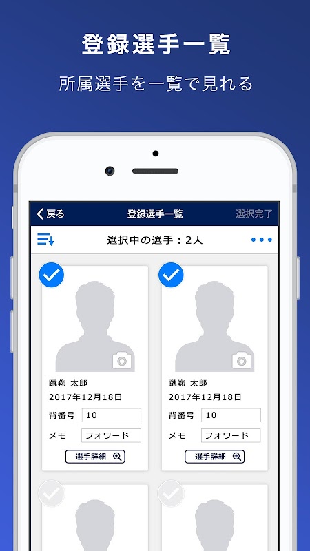3. 登録選手一覧の表示(複数選手の一覧表示)