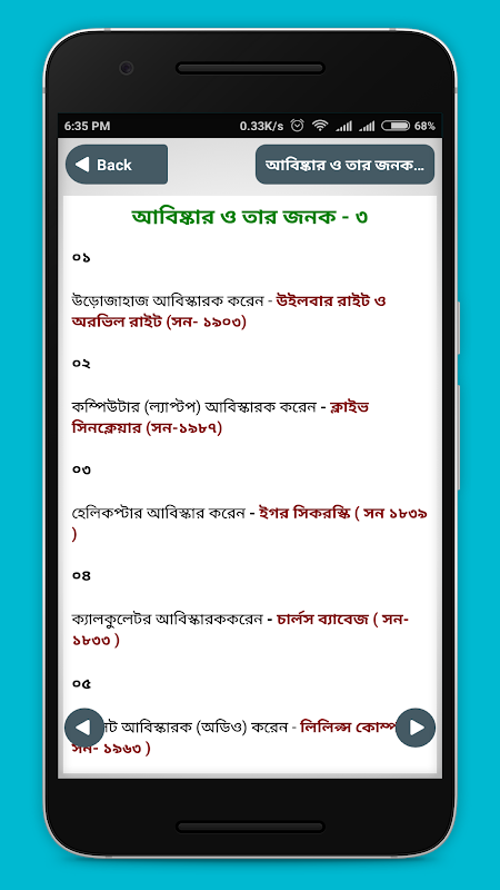 আবিষ্কার ও তার জনক অর্থাৎ আবিষ্কার ও আবিষ্কারক~বিজ্ঞান ও প্রযুক্তি সম্পর্কিত সাধারণ জ্ঞান general knowledge বিষয়ক এই বাংলা এপ যা বৈজ্ঞানিক আবিষ্কার ও আবিষ্কারক এবং জানা অজানা বিজ্ঞান বিষয়ক একটি শিক্ষামূলক অ্যাপ। বিভিন্ন রকম jana ojana জানা অজানা তথ্য ও সাধারণ জ্ঞান বিজ্ঞান general knowledge দিয়ে সাজানো এই বাংলা এপস যা পৃথিবীর মজার মজার আবিস্কার ও তার জনক jonok অর্থাৎ আবিষ্কার ও আবিষ্কারক abiskar abiskarak সম্পর্কে জানতে সাহায্য করবে।
