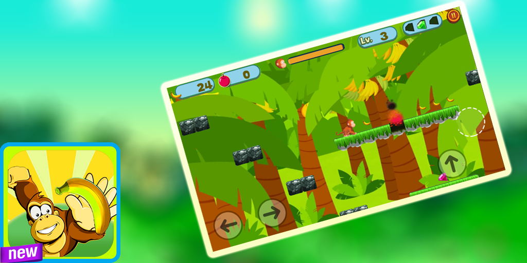 La piccola scimmia è molto affamata. Quindi sta trovando del cibo nella giungla. Ma è molto grande e pericolo. Alcuni mostri sono nella giungla. Il vostro compito è aiutare la banana giungla dalla giungla e raccogliere più banane.
