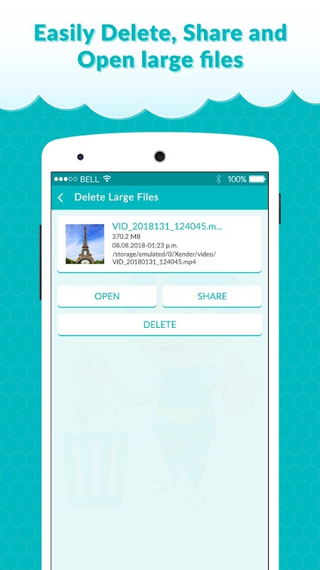 - Scan for large files and delete them to create instant space in phone memory and also provide MB Limit selection filter from setting.