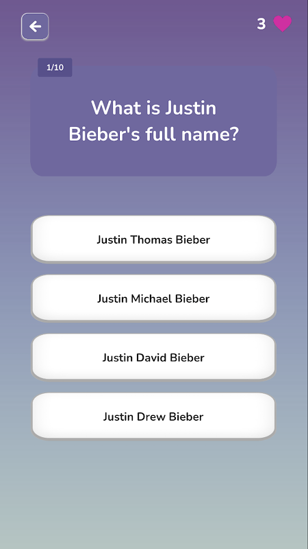 ◆ Pengetahuan Umum: Buktikan keahlian Anda tentang Justin Bieber melalui berbagai pertanyaan trivia yang mencakup album, pencapaian, dan kehidupan pribadinya. Ungkap fakta baru yang menarik tentang artis favorit Anda.