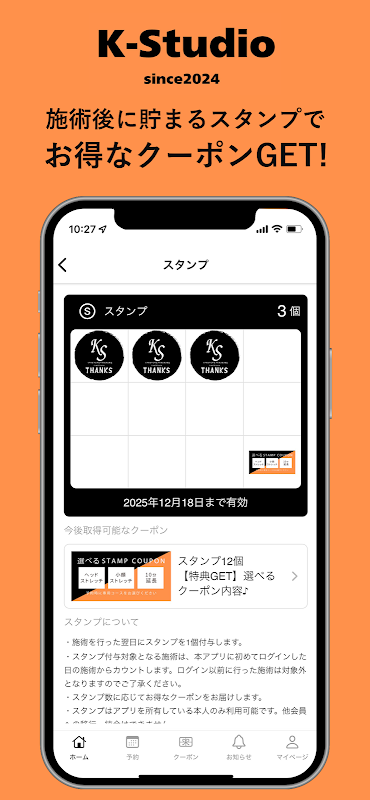 Anda dapat menerima informasi dan penawaran terbaru tentang [K-Studio] melalui aplikasi. Anda juga dapat memeriksa menu, slot waktu yang Anda inginkan, dan melakukan reservasi dari ponsel cerdas Anda kapan saja. Dengan menginstal aplikasi, Anda dapat menggunakan [K-Studio] dengan lebih nyaman.