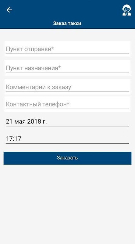 * формирования заявки на корпоративное такси,