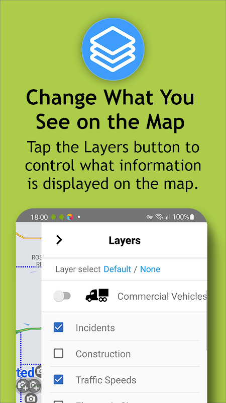 • Pembaruan hampir real-time tentang insiden lalu lintas, konstruksi, cuaca, dan penutupan jalan