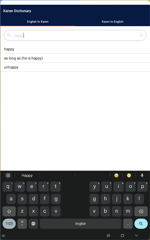 Aplikasi Kamus Karen adalah alat yang andal untuk terjemahan lancar antara bahasa Inggris dan bahasa Karen, yang dirancang untuk memenuhi kebutuhan pelajar bahasa, pelancong, dan penutur asli. Ini menyediakan terjemahan yang akurat melalui antarmuka yang sederhana dan intuitif, menawarkan fitur seperti terjemahan cepat Bahasa Inggris-ke-Karen dan Karen-ke-Inggris, akses offline untuk digunakan kapan saja, dan fungsi pencarian instan untuk hasil yang lebih cepat. Dengan kemampuan menyalin teks terjemahan dengan mudah untuk digunakan di aplikasi lain, aplikasi ini ideal bagi pembelajar bahasa yang ingin memperluas kosa kata mereka, pelancong yang menjelajahi wilayah berbahasa Karen, dan komunikator yang menjembatani kesenjangan antara penutur bahasa Inggris dan Karen.