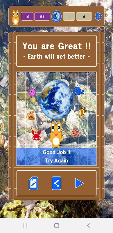 Sebuah permainan untuk mengumpulkan sampah laut dengan karakter laut.