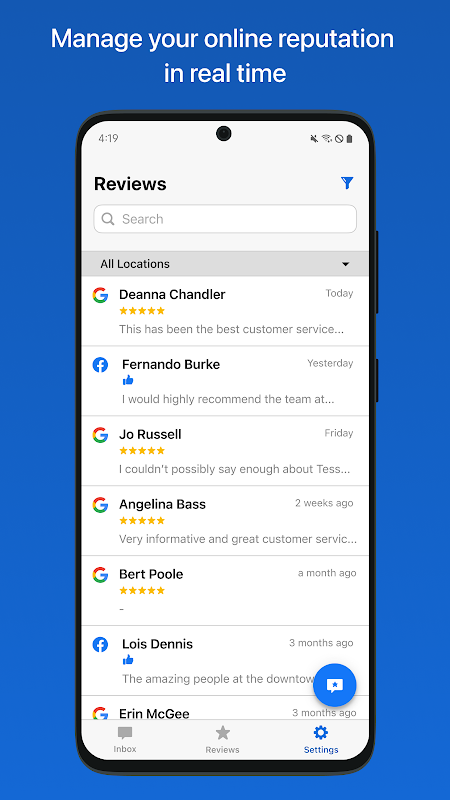 Berinteraksi dengan pelanggan Anda di mana pun mereka berada - mengirim pesan melalui telepon. Gandakan prospek Anda, hasilkan ulasan online, dapatkan pembayaran, dan mulai percakapan obrolan video semuanya melalui pesan teks.