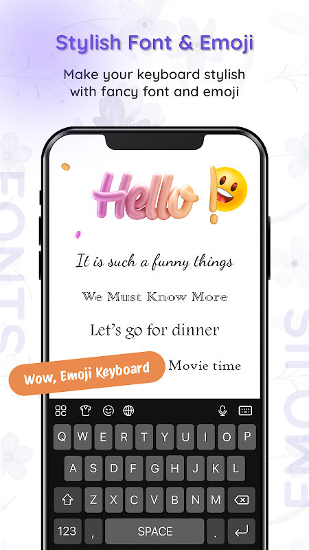 Emoji Keyboard: Tema, Font memberi Anda pengalaman mengetik dan saran atau prediksi yang luar biasa.