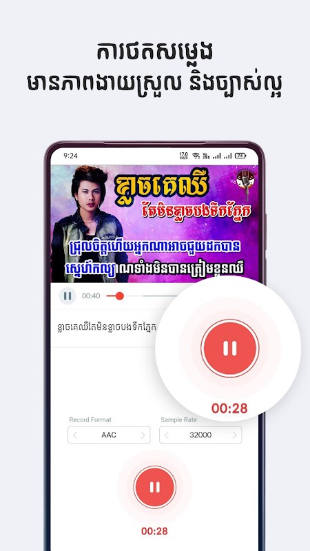 Menyanyi dan Merekam Karaoke Khmer - Suara karaoke dan suara rekaman Khmer terbaik. Nikmati waktu bernyanyi Anda dengan aplikasi kami yang luar biasa di mana saja dan kapan saja.