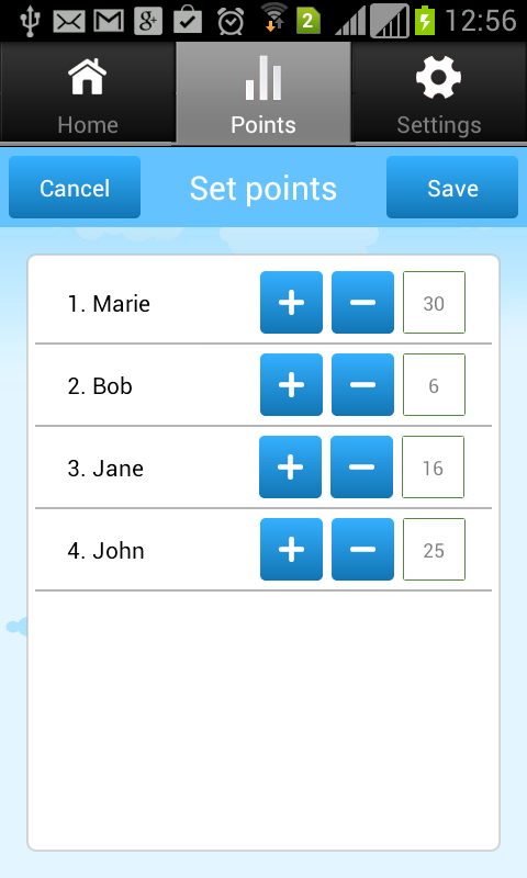 You can use Kiddie Points to reward kids by awarding them points when they do great things, or take points away to express displeasure. Convert the earned points into your cash with your choice of currency and a measurable way to decide kids pocket allowance.