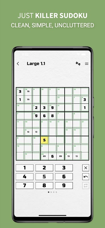 Killer Sudoku (alias Sumdoku/Mathdoku) adalah varian Sudoku tempat sel dikelompokkan ke dalam sangkar dan jumlah nilai di setiap sangkar diberikan. Setelah Anda menguasai Killer, Anda tidak akan pernah kembali ke Klasik lagi...