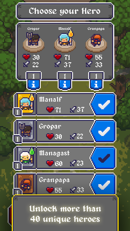 Kamu, Tangan Raja, harus merekrut sekelompok kecil pejuang dari dua belas kelas karakter: Ada begitu banyak pahlawan untuk dijadikan umpan meriam untuk kesenangan Yang Mulia! Manfaatkan kekuatan semua orang, bergerak secara strategis di lapangan, kumpulkan semua item yang kamu temukan dalam perjalananmu, manfaatkan bonus yang kamu dapatkan dalam pertempuran dan naik level dalam petualangan hebat ini dengan humornya yang aneh dan tidak biasa.