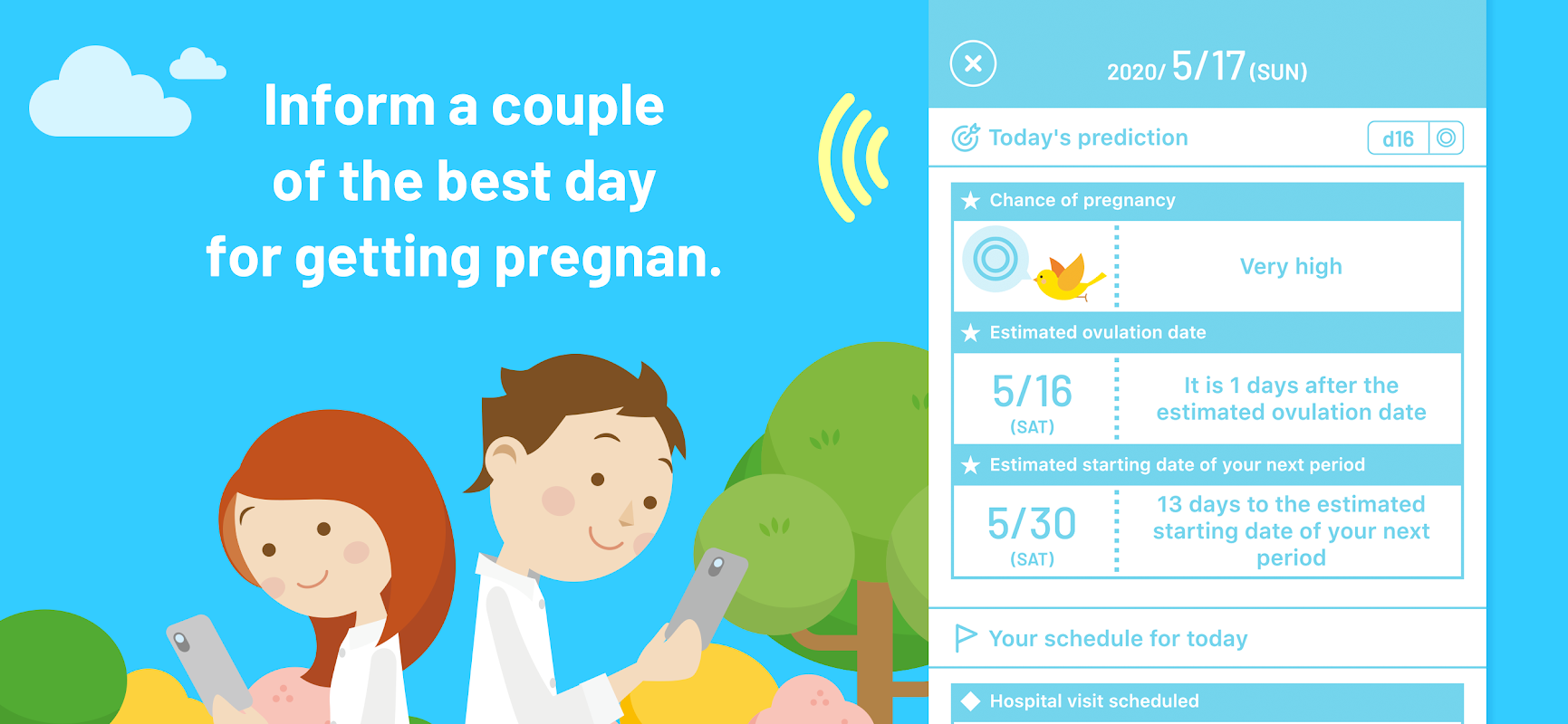 KONOTOKI membantu menyelesaikan masalah ini dengan secara bersamaan memberi tahu pasangan tentang waktu yang paling subur.