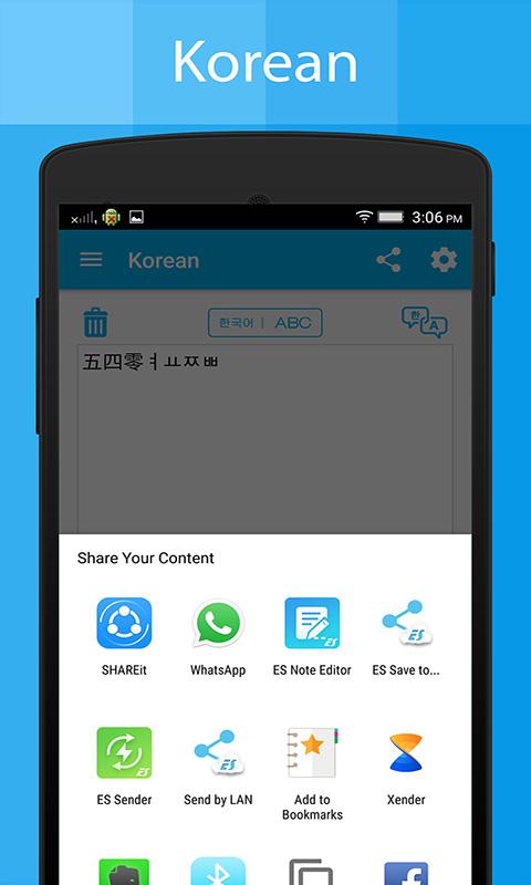 ► Keyboard Bahasa Korea : Anda dapat membagikan teks terjemahan Korea ke teman dan keluarga Anda menggunakan pesan, email, blog.