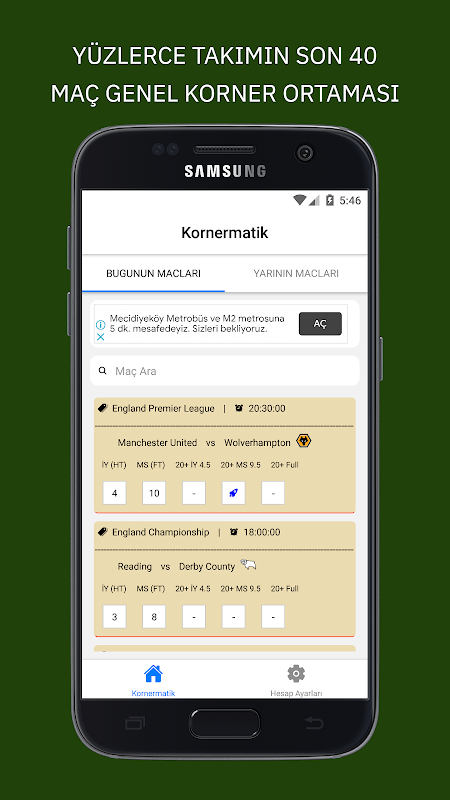 Kornermatik bukanlah aplikasi prediksi taruhan. Ini adalah algoritma yang menganalisis ratusan data dalam waktu singkat dan menyajikannya ke antarmuka pengguna dengan cara yang paling sederhana. Dalam pertandingan di buletin, itu menghitung rata-rata sudut dari 40 pertandingan terakhir kedua tim dan menghitung statistik untuk babak pertama dan akhir pertandingan.