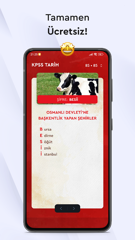 Mempelajari topik sejarah dengan cara enkripsi dan coding akan lebih lama diingat. Sangatlah penting untuk memperkuat mata pelajaran visual, terutama untuk kelas Sejarah. Aplikasi ini telah disiapkan untuk semua kandidat yang mempersiapkan KPSS. Berkat antarmuka aplikasi yang bersih dan mudah digunakan, belajar Sejarah kini menjadi sangat menyenangkan. Pengalaman aplikasi yang cepat dan warna yang ramah mata lebih diutamakan.