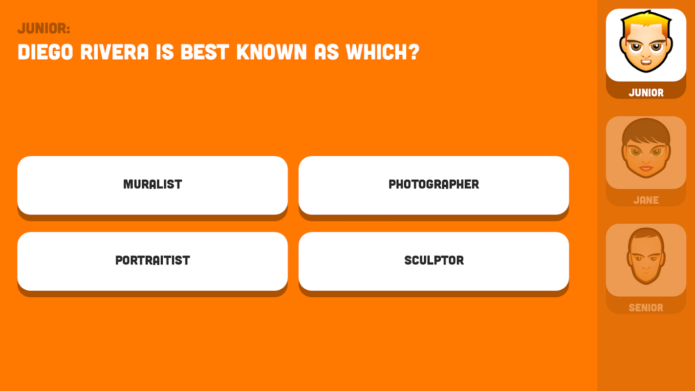 Each player has to answer a general knowledge question correctly from four possible answers.