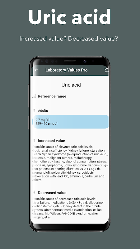 Konten yang disajikan di sini hanya untuk informasi netral dan pendidikan umum dan tidak menggantikan konsultasi pribadi, pemeriksaan atau diagnosis oleh dokter berlisensi. Tidak ada keputusan medis yang hanya dapat didasarkan pada hasil dan informasi dari program ini - Aplikasi Laboratory Values Pro.