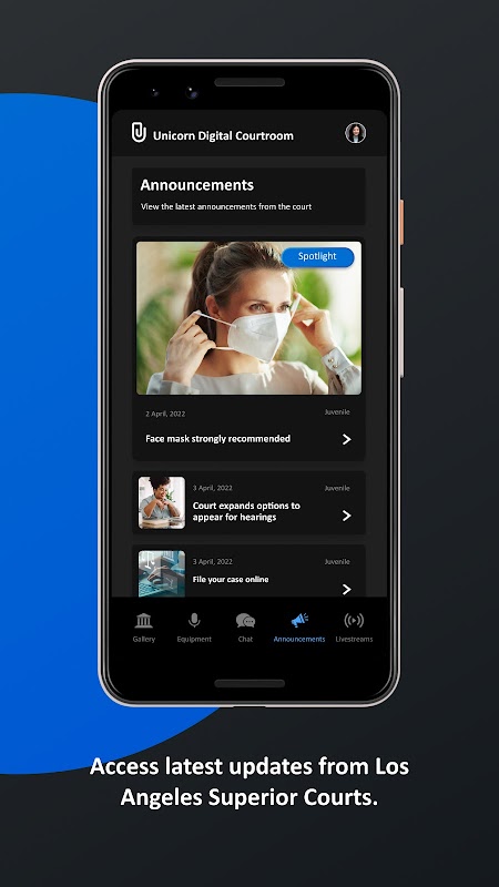 Selamat datang di LACourtConnect. Buat penampilan pengadilan Anda dari rumah, kantor, di mana saja. Ruang Sidang Digital Unicorn dikembangkan dan dikelola oleh Tech Unicorn untuk Pengadilan Tinggi Los Angeles sebagai LACourtConnect.