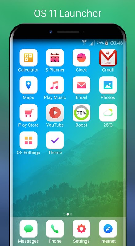 OS 11 launcher and themes is a beautiful application with a relatively simple design experience, users will enjoy the slide effect or see your phone look faster and class.