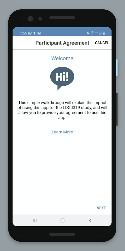 Anda akan menggunakan aplikasi ini untuk mengisi kuesioner selama partisipasi Anda dalam Studi LDX0319.