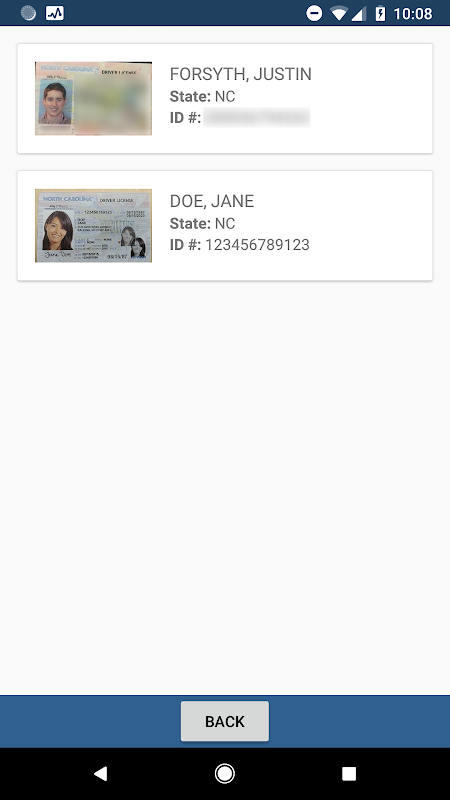 The LEADTOOLS ID Scanner app reads barcodes from North American driver's licenses and displays all decoded data elements in a convenient format. Convenient for law enforcement, alcohol/tobacco sales, and security personnel.
