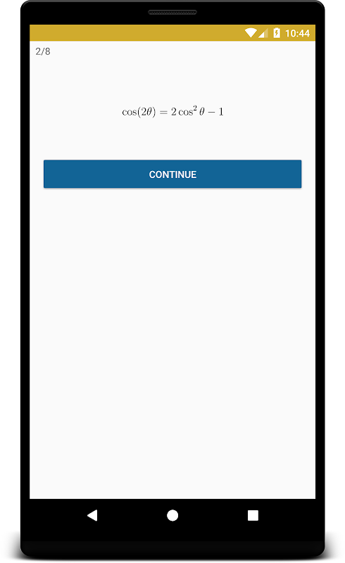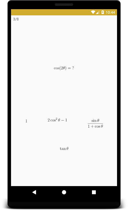 First you will see the formula so you can learn and memorize it. Later, flash cards with question to test what you have learned and memorized will be shown.