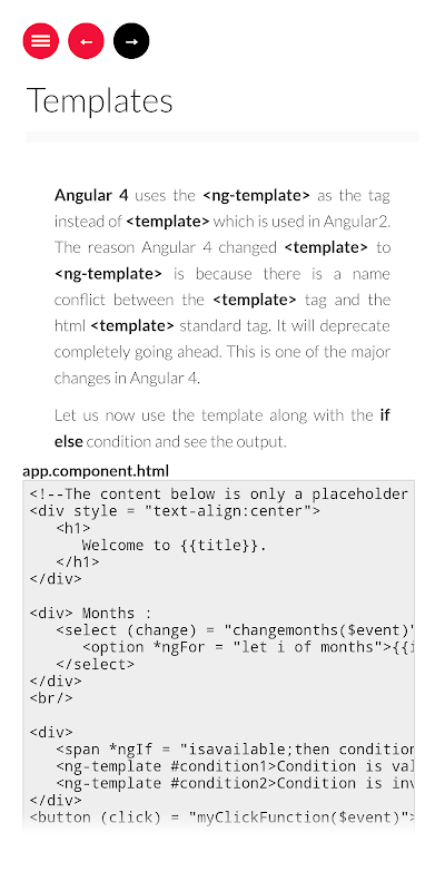 Aplikasi GRATIS ini akan membantu Anda memahami Tutorial Angular4 dengan benar dan mengajari Anda tentang cara Memulai Pengodean menggunakan Angular4. Di sini kita mencakup hampir semua Kelas, Fungsi,