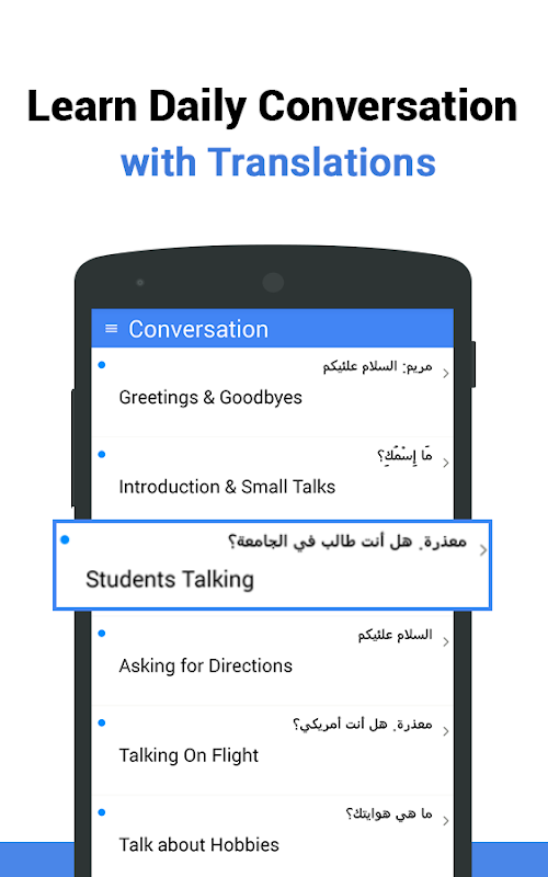 Percakapan: Bagian fitur beberapa percakapan dasar seseorang harus setiap hari dalam bahasa Arab.