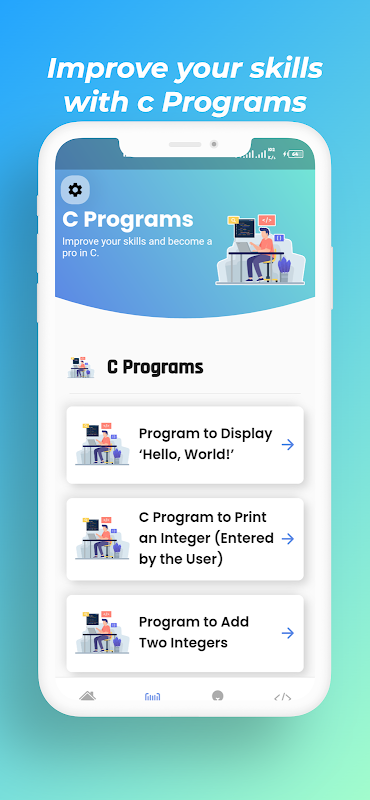 Di aplikasi Belajar Pemrograman C, Anda dapat menemukan Tutorial Pemrograman C,