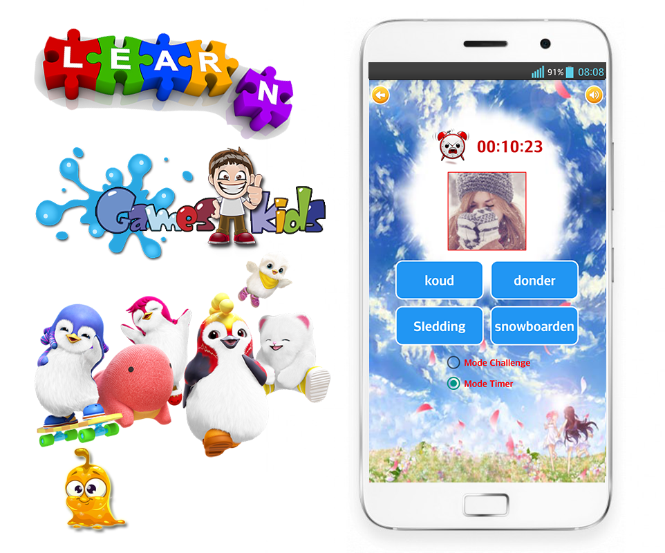 Jadi, Belajar Bahasa Belanda untuk Anak-Anak memiliki 2 permainan yang menyenangkan. Di game , Anda dapat berlatih Bahasa Belanda , membantu Anda mengingat kosa kata dengan lebih baik. Satu kata akan secara otomatis diucapkan, Anda harus mendengarkan apa itu, lalu pilih gambar yang benar dengan menyentuh layar.