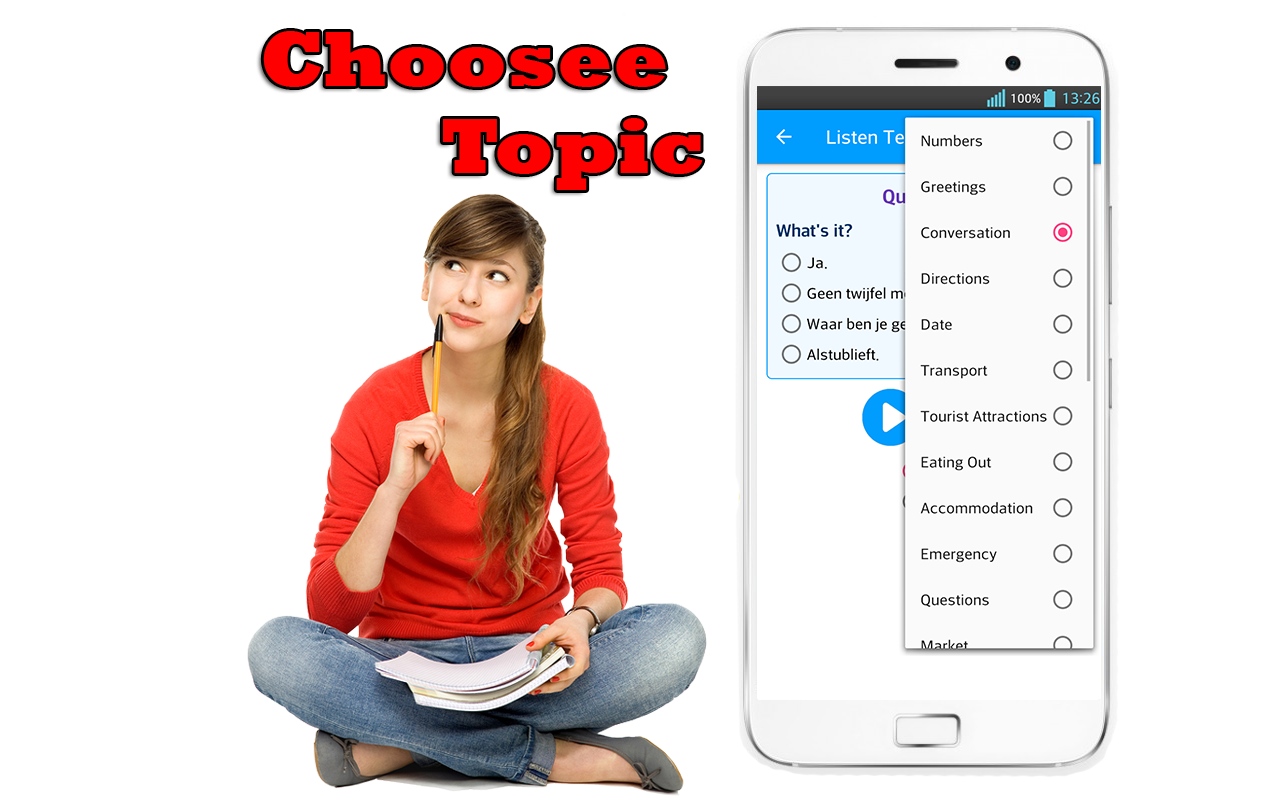 * Percakapan: Belajar bahasa Belanda dengan kalimat percakapan bahasa Belanda gratis setiap hari. Sangat berguna untuk Anda ketika bepergian dan keluar tanpa jaringan!