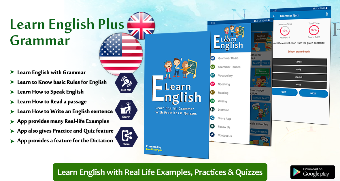 Aplikasi Belajar Bahasa Inggris memberi Anda cara mudah untuk Belajar, Membaca, Menulis dan Berbicara Bahasa Inggris.