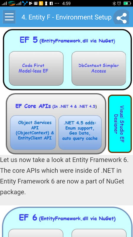 The Learn Entity Framework is designed for those who want to learn how to start the development of Entity Framework in their application.