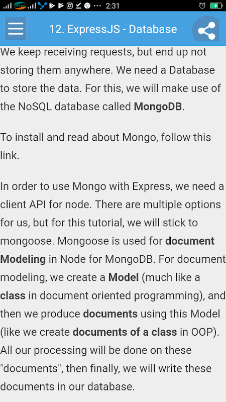 You should have basic knowledge of Javascript and HTML. If you are not acquainted with these, we suggest you to go through Learn Expressjs Fulls on those areas first. It will definitely help, if you have some exposure to HTTP, although it is not mandatory. Having a basic knowledge of MongoDB will help you with the Database chapter.