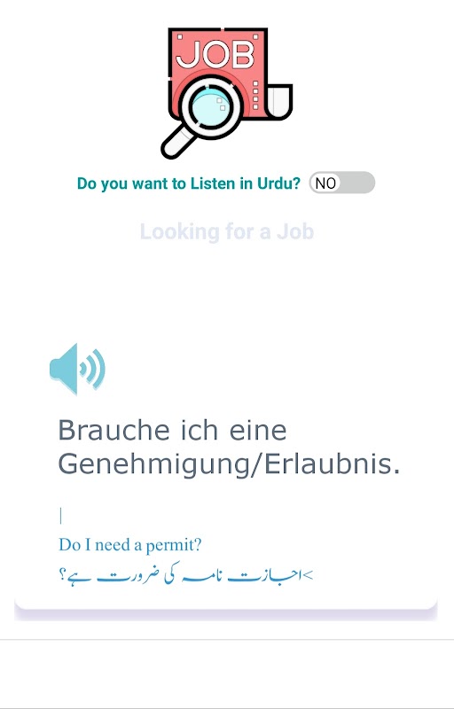 • Dialog darurat dan kalimat bantuan yang diucapkan secara luas dalam situasi tertentu atau situasi dunia nyata kehidupan sehari-hari / sehari-hari dengan terjemahan audio bahasa Inggris serta Terjemahan Audio Urdu untuk percakapan bahasa Jerman.