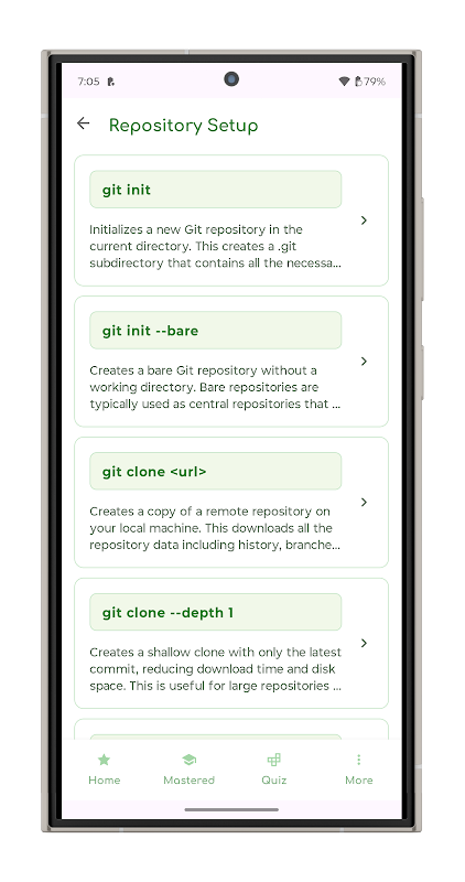 Tingkatkan keterampilan Git Anda dari pemula hingga ahli dengan pelajaran interaktif, kuis, skenario dunia nyata, dan pengalaman belajar gamifikasi. Baik Anda seorang pelajar, pengembang, atau pemimpin tim, aplikasi pembelajaran Git lengkap ini membantu Anda menguasai kontrol versi sesuai kecepatan Anda sendiri — offline dan bebas iklan.