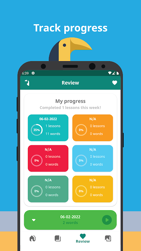 - Gim dan kuis yang dibuat secara acak dan menyenangkan untuk melacak kemajuan Anda - perbaiki dan tingkatkan keterampilan bahasa Anda dalam permainan menyenangkan yang dihasilkan secara unik setiap kali Anda memainkannya.