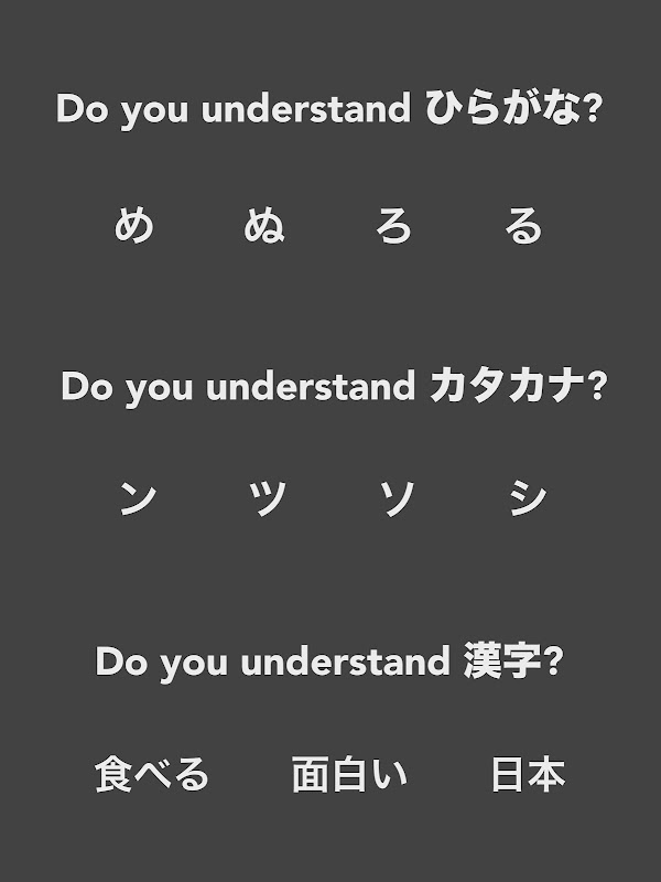 Dengan aplikasi ini Anda bisa mendapatkan banyak kosakata untuk hidup di Jepang, untuk menonton film Jepang, untuk membaca Jepang Komik (manga) dan mendengarkan musik Jepang. Tentu saja pada saat yang sama Anda dapat menguasai Kanji.