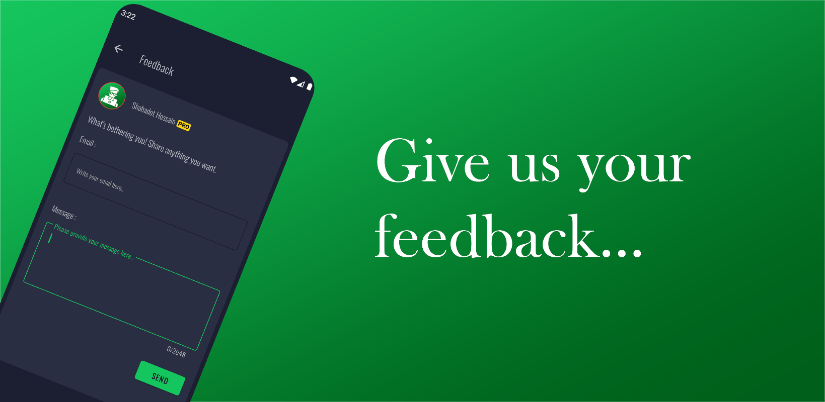 If you have any feedback for us, please write us an email and we will be happy to help you out. If you have liked any feature of this app, feel free to rate us on the play store and share with other friends.