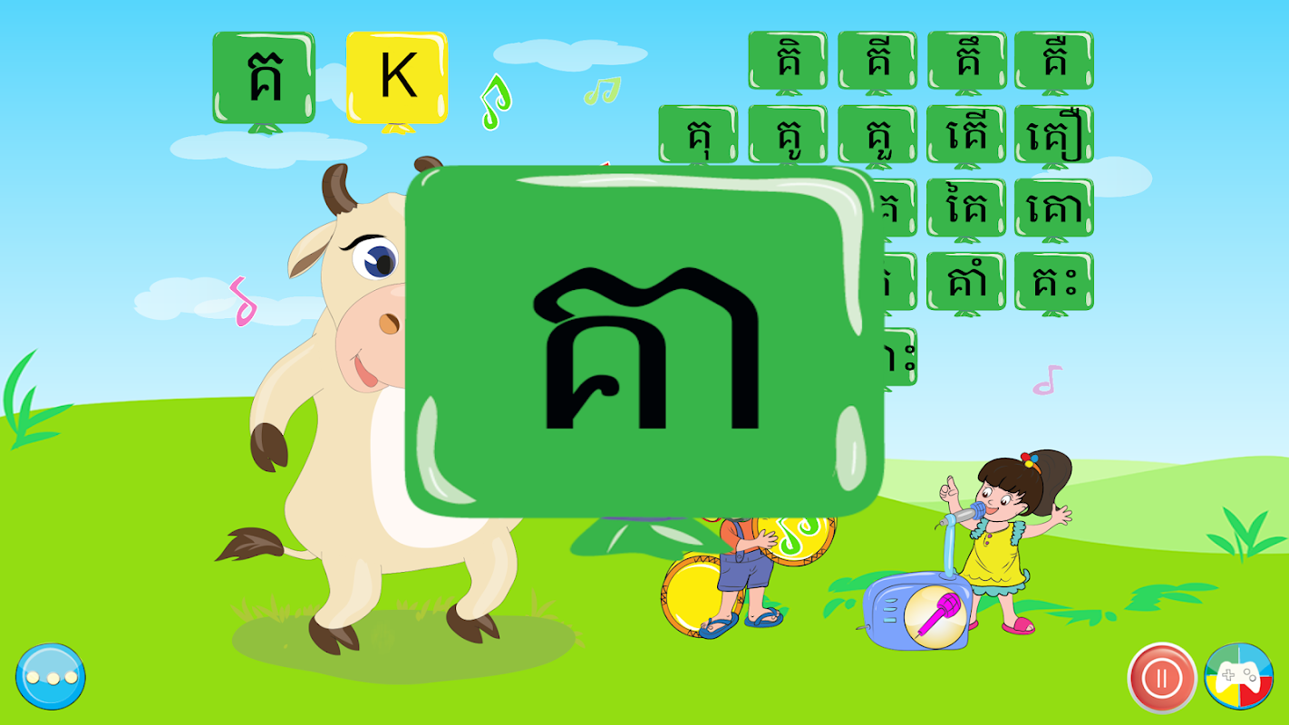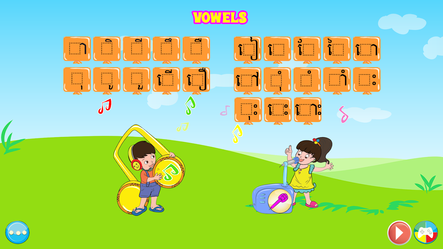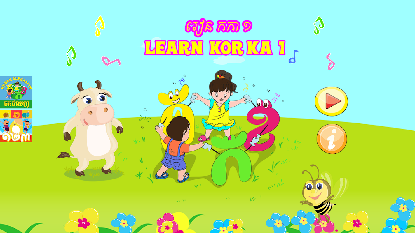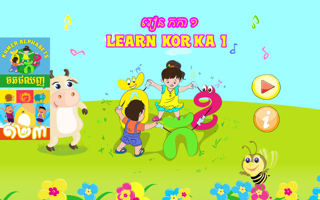 Aplikasi Belajar Kor Ka untuk Anak akan mengajarkan Anda tentang Khmer Abjad, Konsonan dan Vokal dengan karya seni keren, suara yang bagus, lagu dan musik. Aplikasi ini mencakup bantuan Fonetik Bahasa Inggris yang akan membantu Anda mengucapkan setiap kata dengan mudah. Dan di akhir setiap alfabet, ada kuis interaktif untuk mengukur seberapa banyak Anda mendapatkan peningkatan setelah bermain dan membacanya.