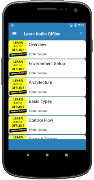 Dengan App ini Anda tidak perlu koneksi internet untuk membaca tentang konsep Kotlin.