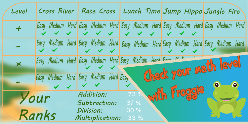 By the time your child has completed the first few levels, he'll be on the way to become a math genius, all the time playing and enjoying himself. It follows the mode of survival of the fittest. Only those who are good at maths will be able to survive the puzzles. The game has three modes, easy, medium and hard to make sure the child keeps learning and challenging himself in maths problems. Your kid might be the next math genius! frog math is the new kind of math!