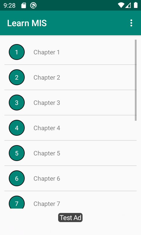 Aplikasi Pelajari SIM meliputi semua bahan sistem informasi manajemen subjek.
