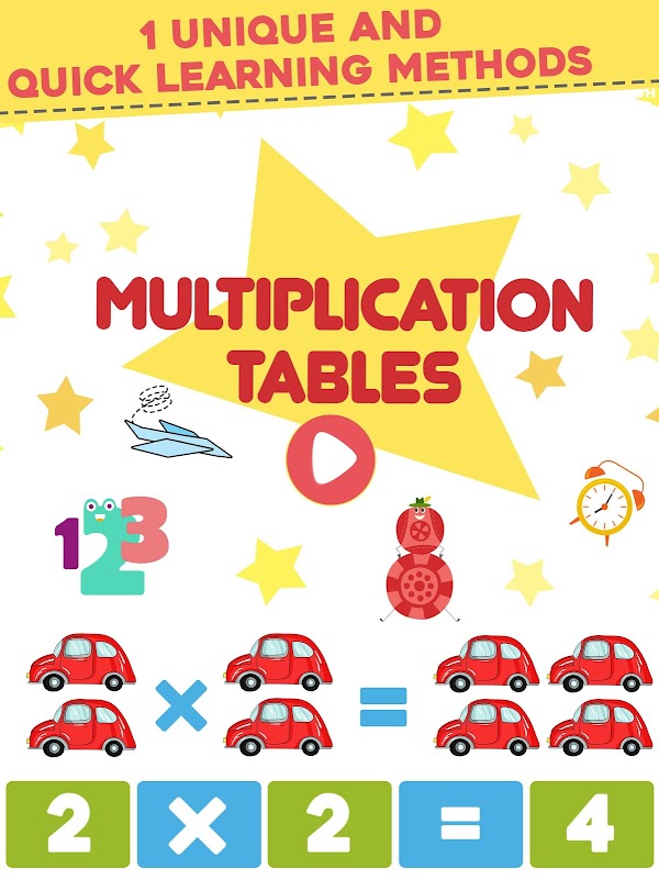 Multiplication is an important skill in Maths. Mastering multiplication usually begins with learning the times tables. Help your child learn each times table and boost their confidence. Learn times tables fast! Use this app to teach your kids math tables using Unique quick learning method.