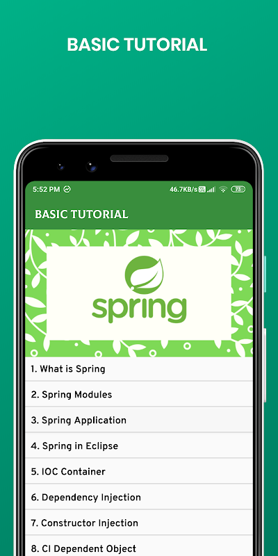Jika Anda hanya ingin mempelajari dasar-dasar pegas, maka Anda harus membatasi untuk Pegas Inti. Ini adalah mesin inti dari kerangka pegas. Konsep dasar seperti Dependency Injection (DI), Aspect Oriented Programming (AOP), Singleton Beans, dll. Dicakup dalam kerangka kerja pegas dasar.