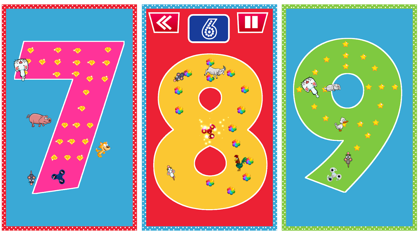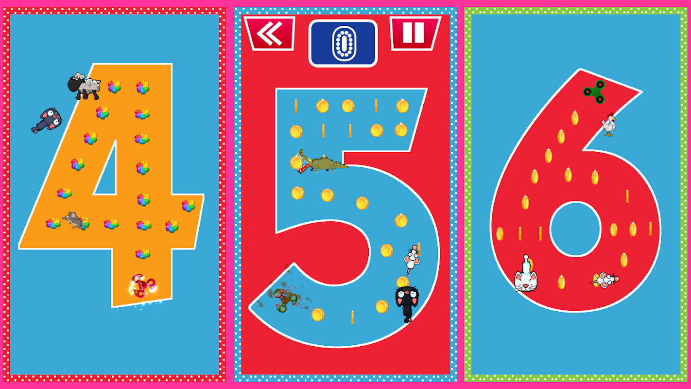 Kontrol pemintal gelisah dengan jari Anda dan lacak huruf dan angka sambil mengumpulkan poin dan menghindari binatang!