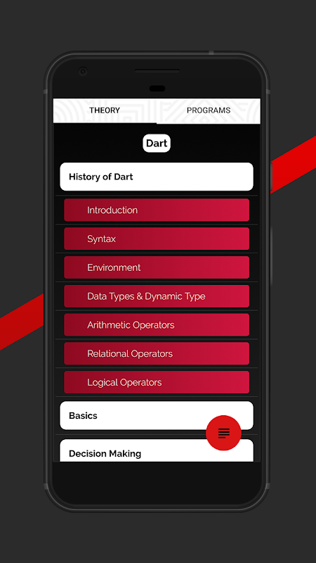 Aplikasi ini dilengkapi dengan berbagai bahasa pemrograman. Seperti C ++, Java, Kotlin, Python, PHP dan Dart. Aplikasi ini dibuat untuk membantu meningkatkan pemikiran berbagai masalah yang terkait dengan Pemrograman. Ini terdiri dari Bahasa pemrograman berdasarkan mata pelajaran dan kode sumbernya.